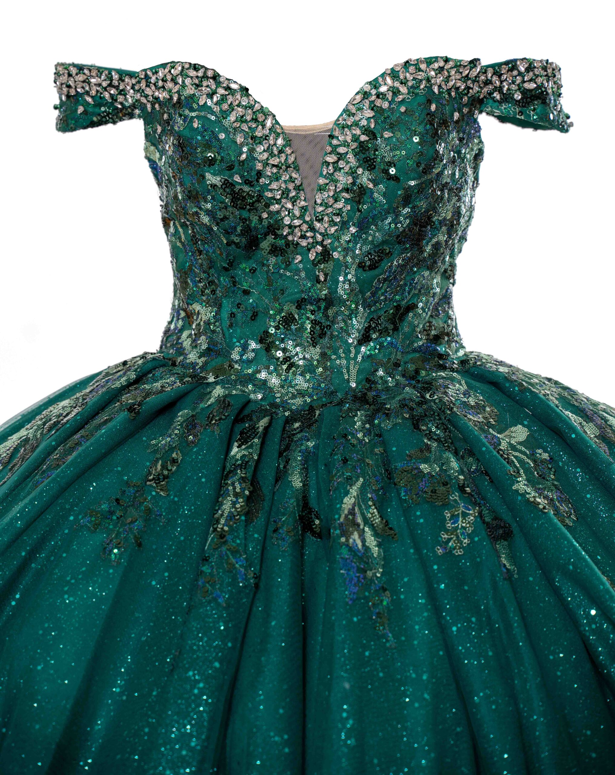 Introducing our latest addition to our Navid Quinceañera collection – a stunning emerald green dress that exudes an aura of elegance and sophistication. This dress is a masterpiece of craftsmanship, with its luxurious fabric adorned with intricate detailing. The off-shoulder neckline is gracefully accentuated by delicate embellishments, giving it a regal touch. The voluminous skirt flows majestically, offering a glimpse into a fairy-tale world where fashion meets art. The rich emerald green hue of the dress is sure to turn heads and make a statement at any formal event. The dress is perfect for a Quinceañera who wants to make a bold fashion statement while still maintaining an air of elegance and sophistication.