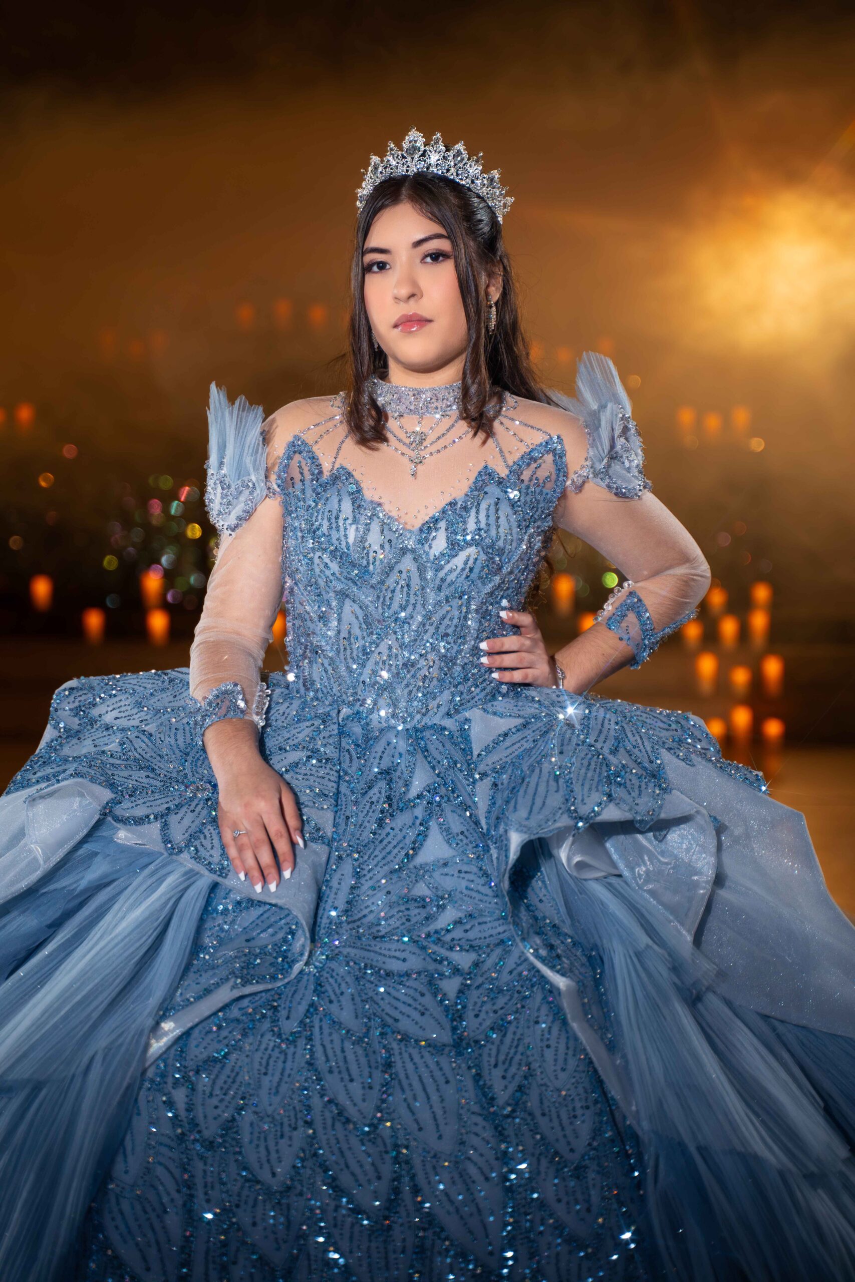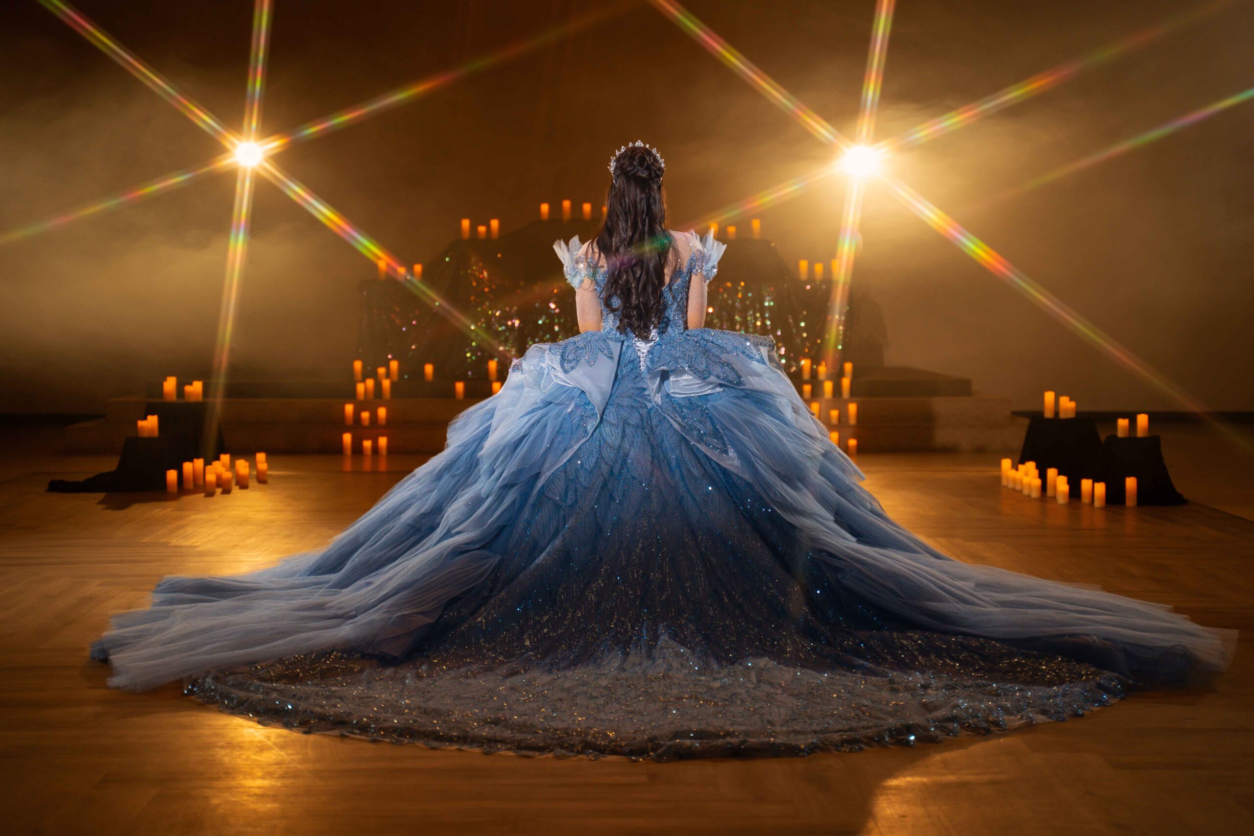 Step into the spotlight in a dazzling display of elegance with our luxurious blue sapphire Quinceañera dress.