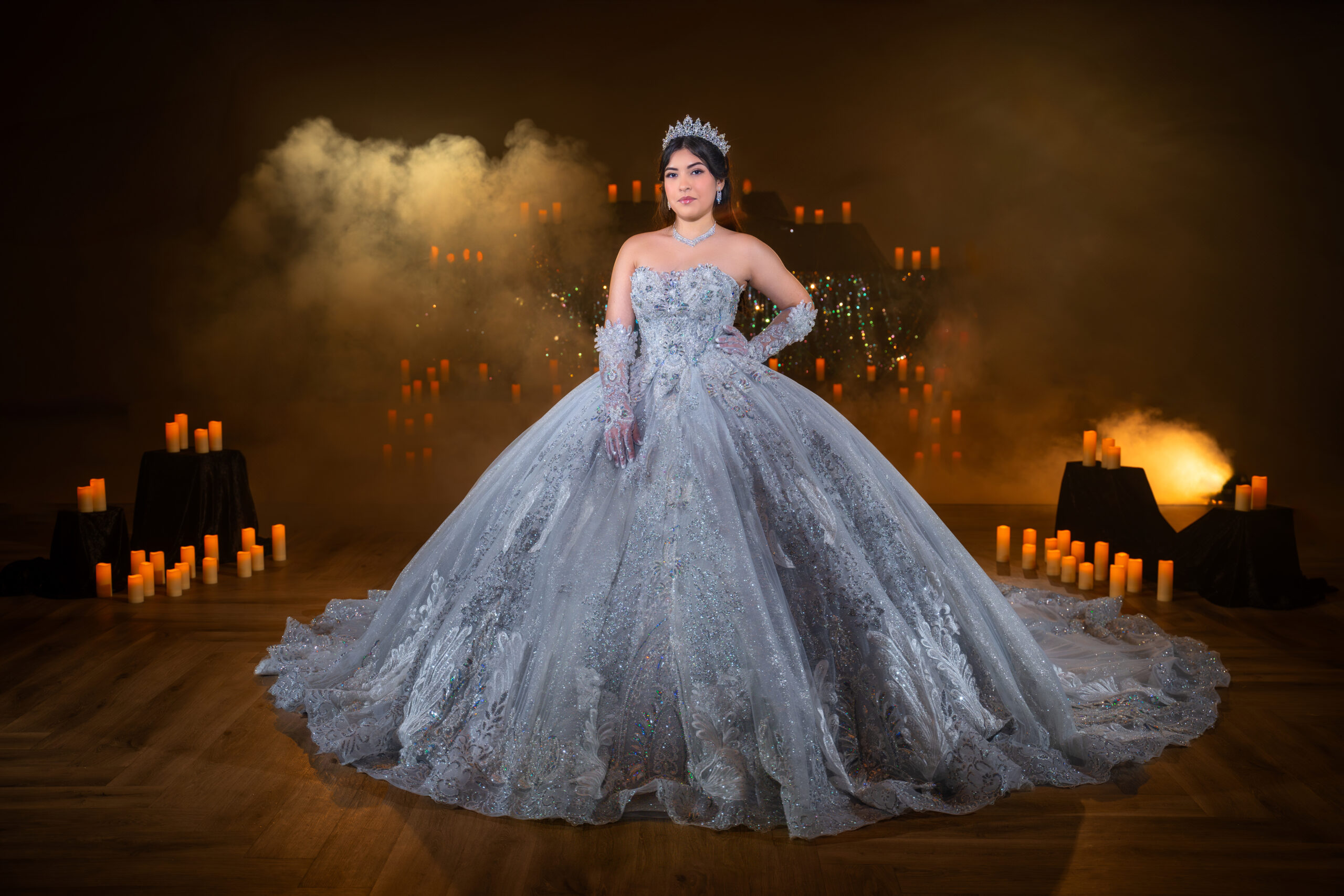 Behold the epitome of opulence and grandeur – the most breathtaking Quinceañera dress. The Silver Star.